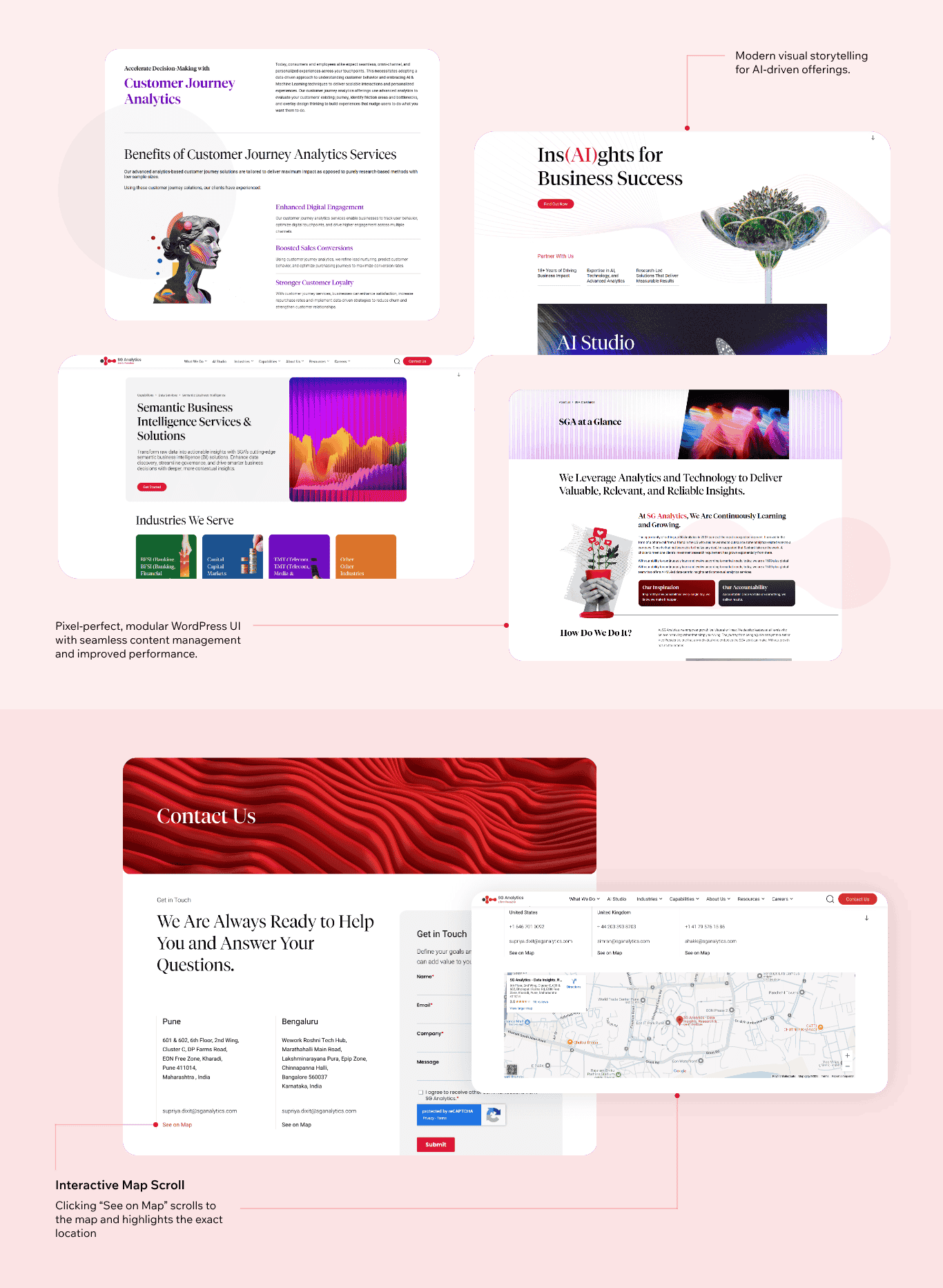 Our team worked closely with SGAnalytics to develop a custom WordPress website that aligned with their business goals: