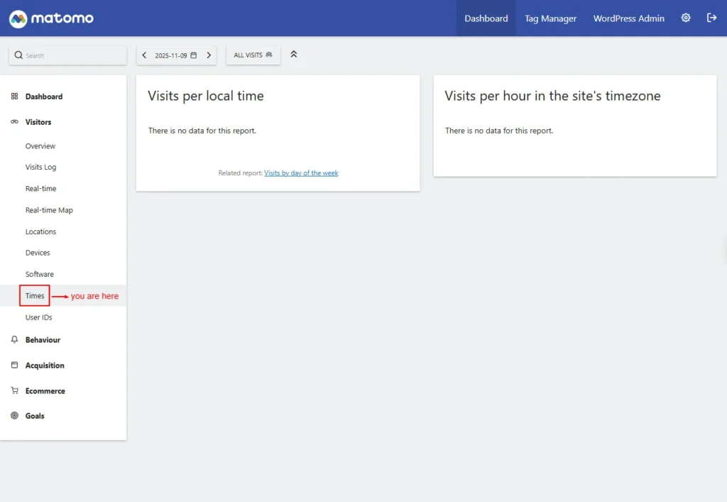 The Times report shows when visitors access your site, highlighting peak hours and daily activity patterns to help you understand user behaviour over time.