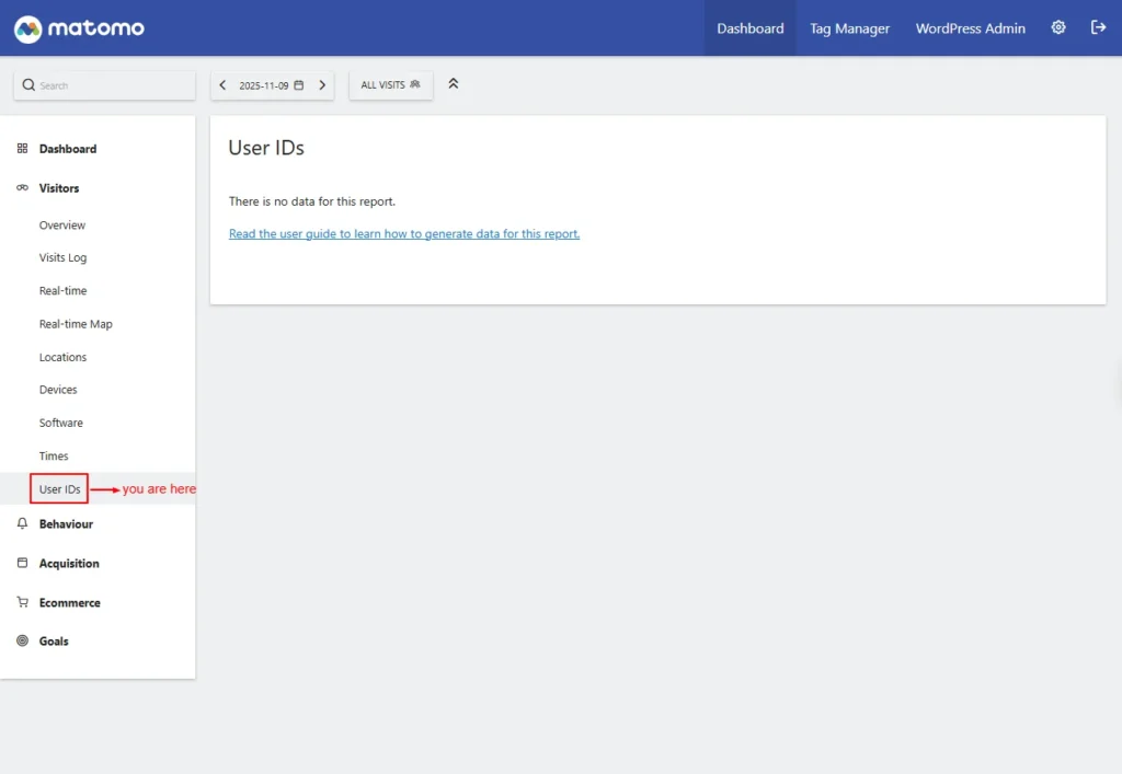 The User IDs report tracks activity from logged-in or identified users, allowing you to view individual user journeys and behavior across your site.