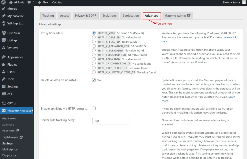 By default, uninstalling the Matomo plugin permanently deletes all data, unless you have a backup. If you disable this option, the tracked data in your database will be preserved. This helps protect your historical analytics data from being accidentally deleted during uninstallation.