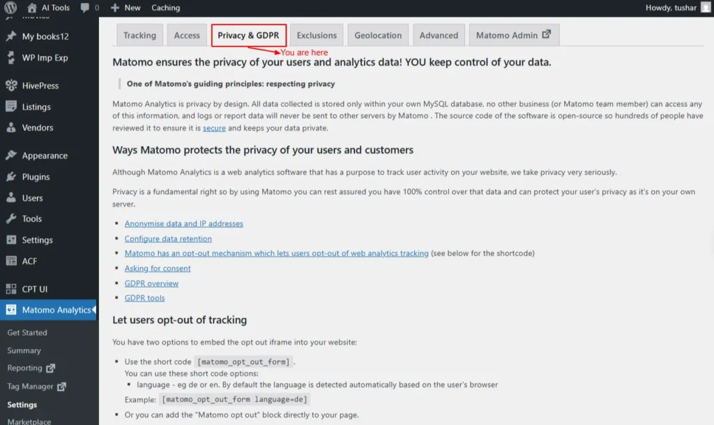 - Sync users: Matches and updates WordPress user data with Matomo’s user records.