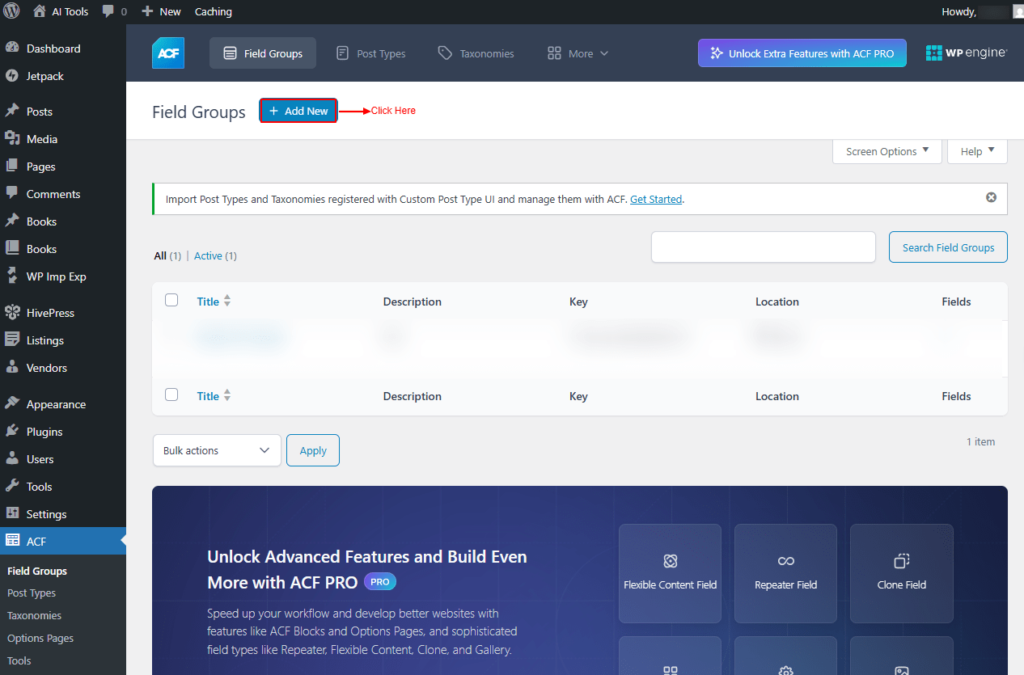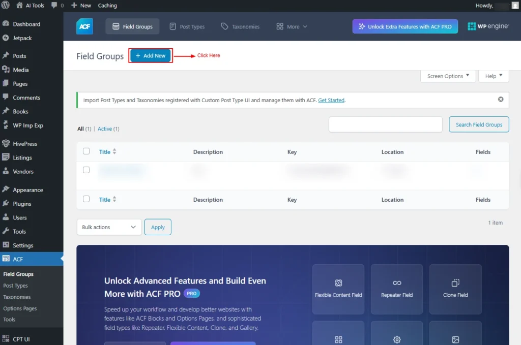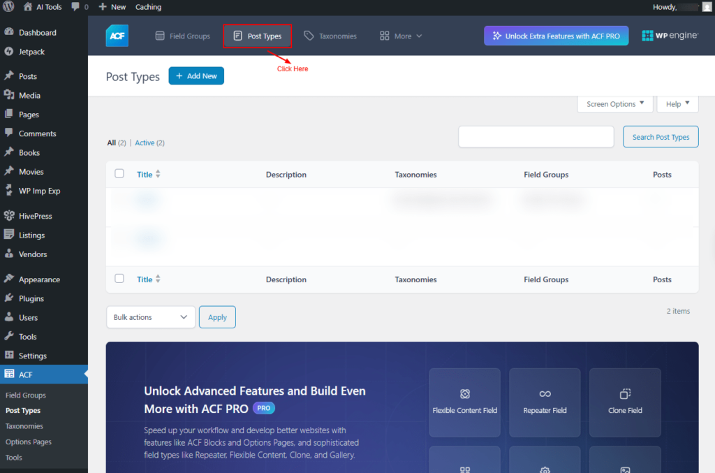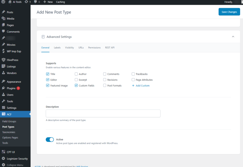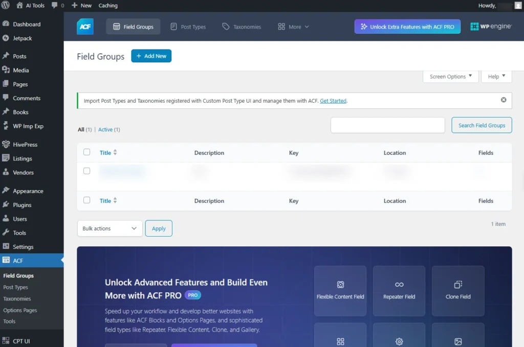- Import from Custom Post Type UI: you can import existing Post Types and Taxonomies created with the Custom Post Type UI plugin, allowing you to manage and edit them directly within ACF.