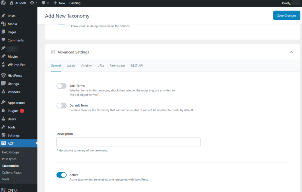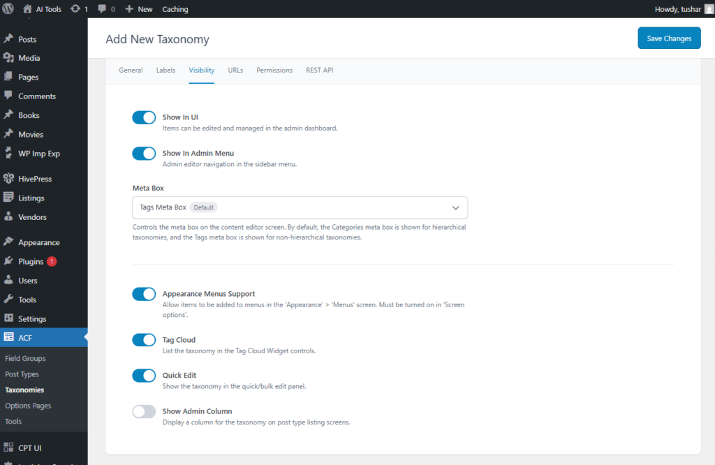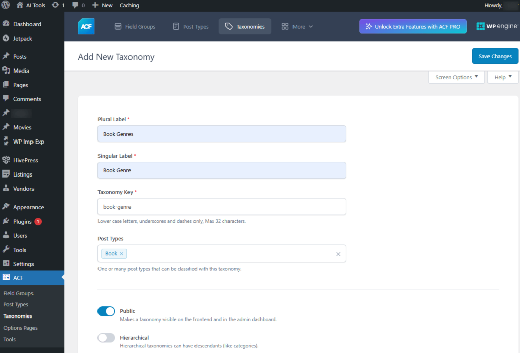 - Public: Makes the taxonomy visible on both the frontend and the admin dashboard.