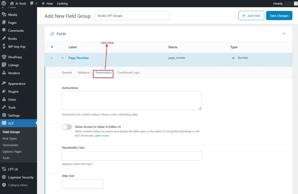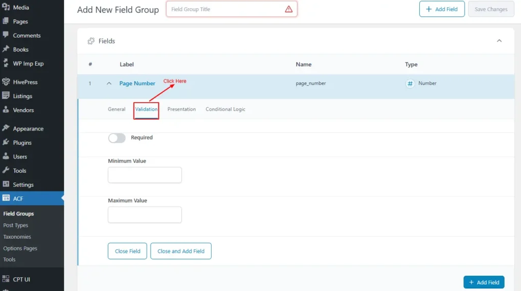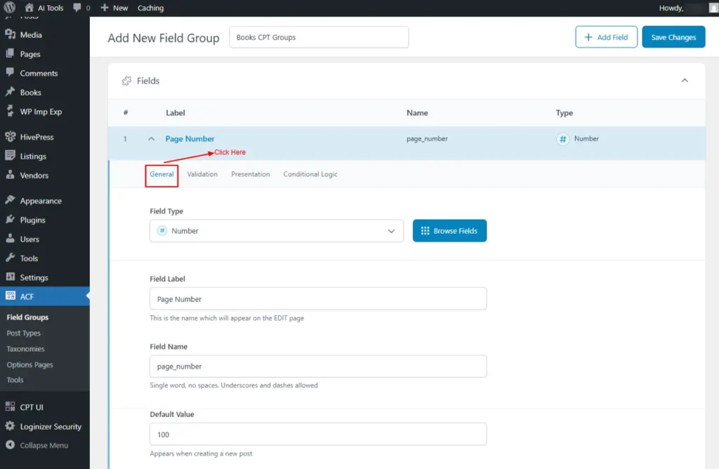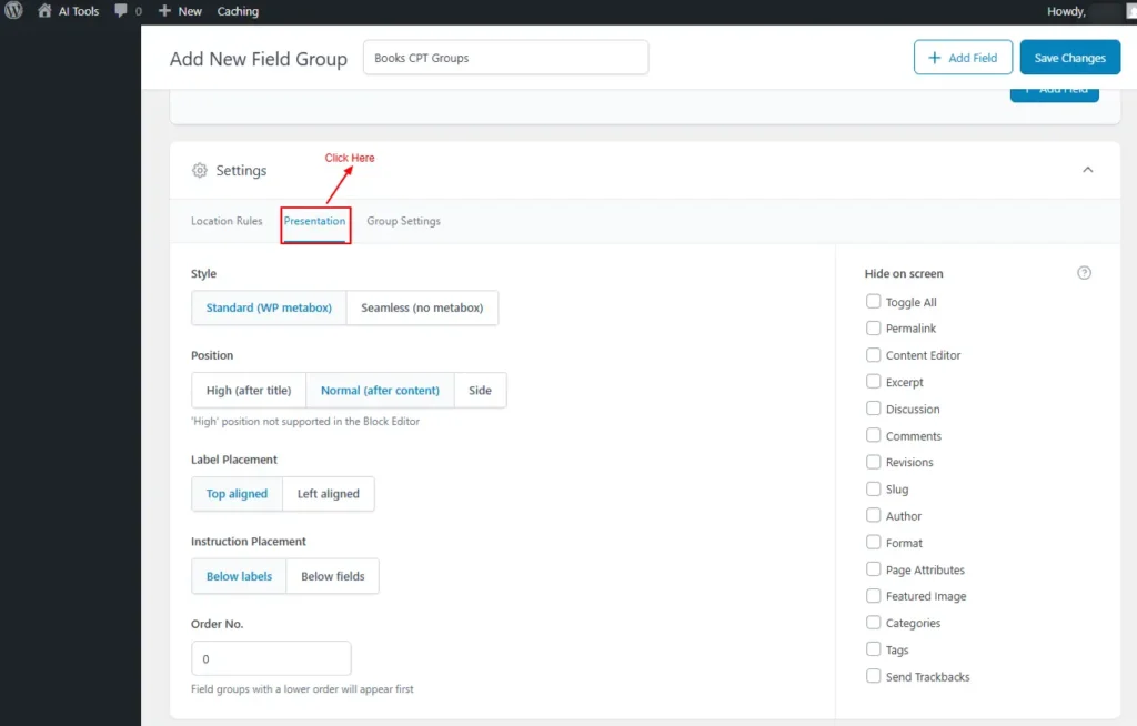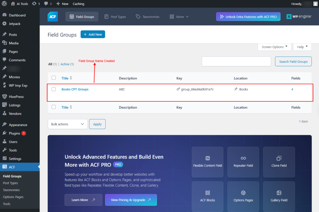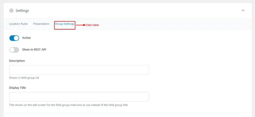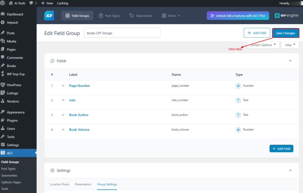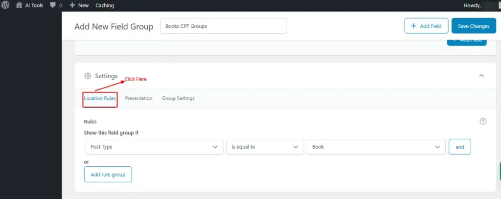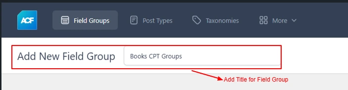 For example, you are creating a field group for Books CPT, let’s call it Books CPT Groups.