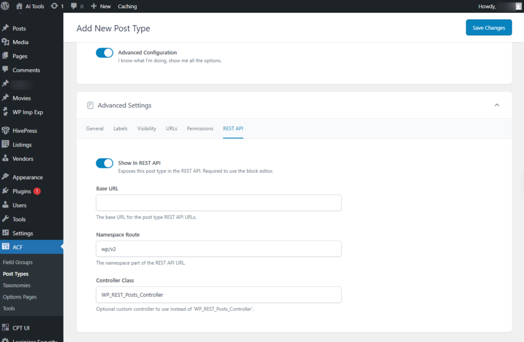 - Base URL: The base path used for the REST API endpoints of this post type.