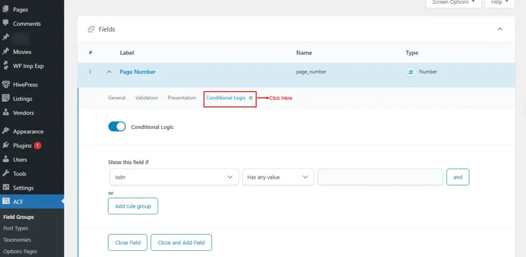 From the Left Hand Navigation Menu, Click on ACF Menu.