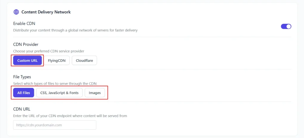 If you prefer another CDN provider, FlyingPress supports custom configurations: