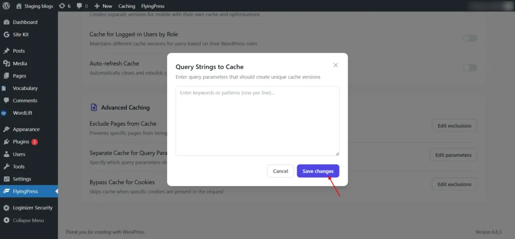 In this step, you’ll configure your cache settings to control how WordPress stores and delivers cached content.
