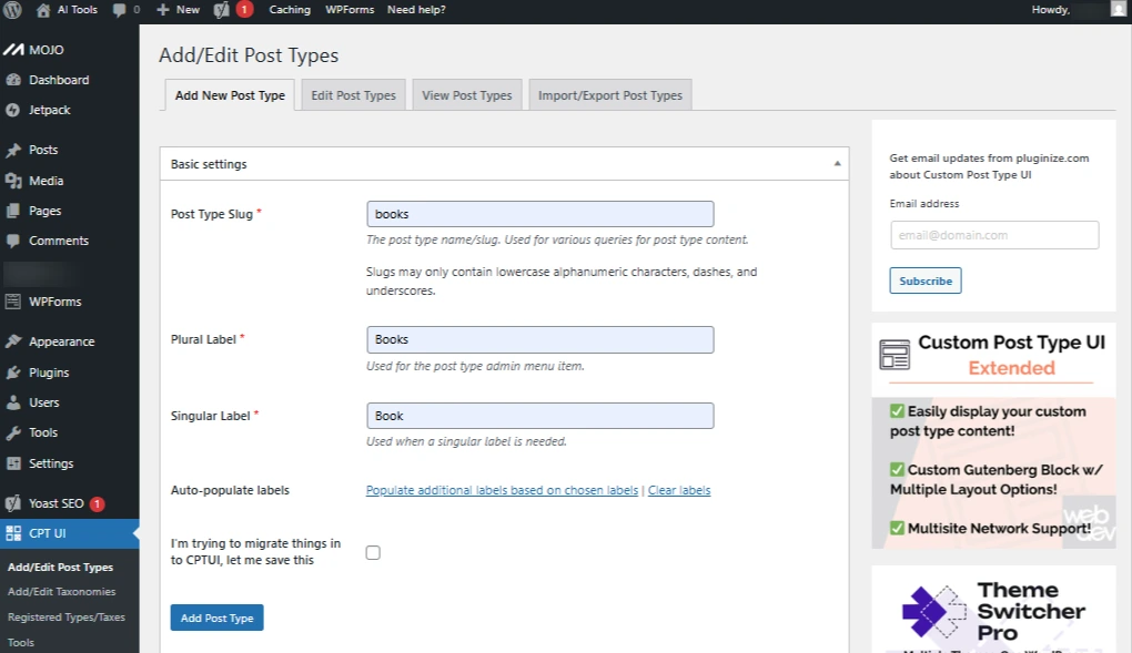 How to add a Custom Post Type in WordPress using the Custom Post Type UI plugin