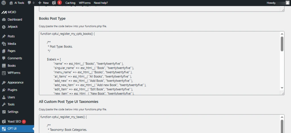 Instead of writing custom code, you can use the plugin’s simple interface to register and manage new post types and taxonomies. This ensures that even non-technical users can customize their website’s content structure to match their business needs.