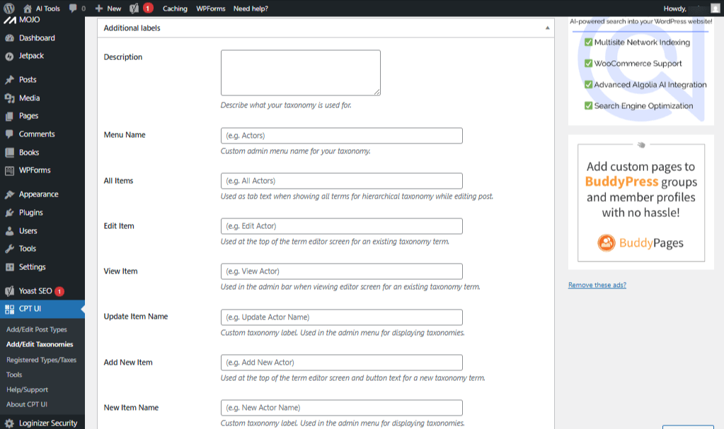 - Menu Name: Specify a custom name for your taxonomy in the admin menu.